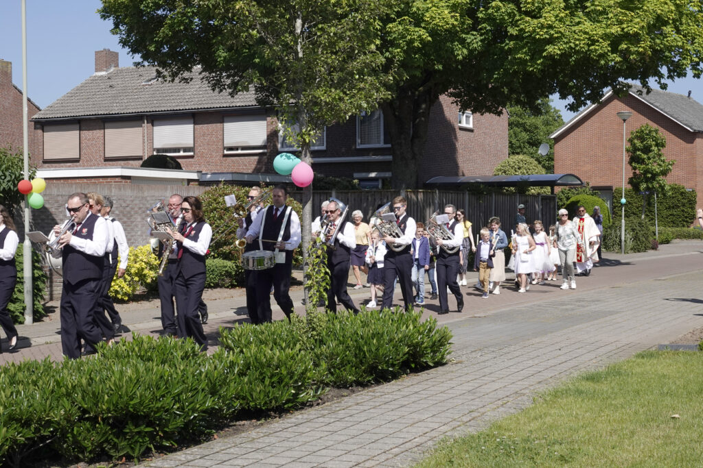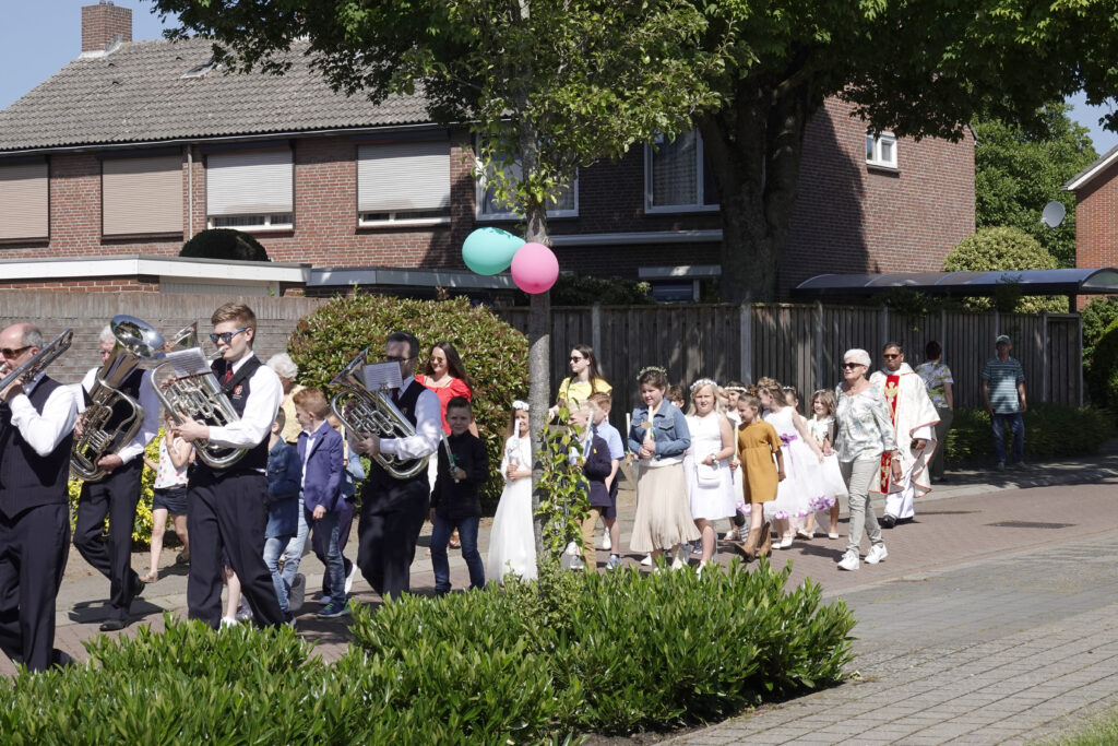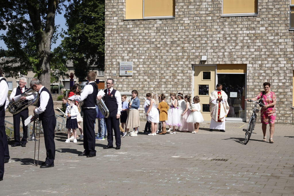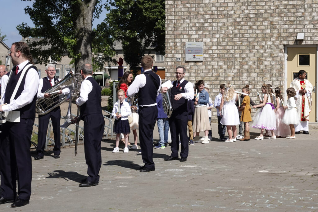 De communicanten van Stramproy werden bij de kerk feestelijk begeleid door onze fanfare tijdens hun 1e heilige communie, een prachtige dag die elk communicantje zich later nog herinnert.