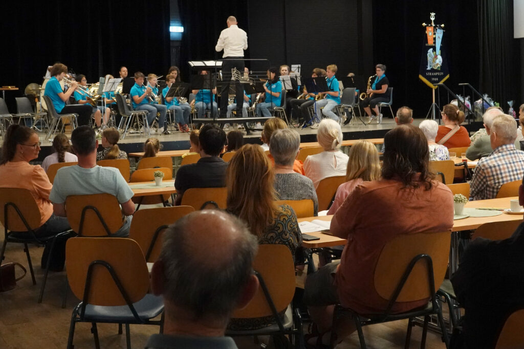 En zoals je weet, een piramide vind zijn stevigheid juist in die basis, want als je een piramide op z’n kop zet, dondert ‘ie zo om. Diverse keren welgemeend applaus en enthousiasme vanuit het publiek voor deze jeugdige muzikanten. Ze zijn niet alleen de toekomst van onze fanfare, maar ook de hartslag van onze Royer gemeenschap.
